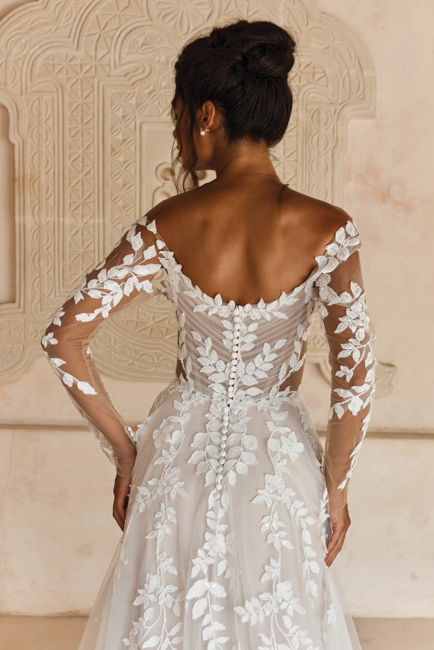 Das Brautkleid Landon verkörpert Madi Lane in Person und hat ihren Platz in unserer Signature-Kollektion eingenommen. Hier in Elfenbein mit mokkafarbenem Futter, das die atemberaubenden Spitzendetails wunderschön zur Geltung bringt. Entworfen für unsere romantischsten Madi-Bräute, die ein wirklich besonderes Kleid eines australischen Designers mit trendigen, modernen Details suchen. Landon hat so viel zu bieten – ihr Illusions-Mieder aus plissiertem Tüll sorgt für einen schlankmachenden Effekt, während gestickte Spitzenmotive auf den Trägern das trendige Plissee-Tüll-Detail betonen und eine schmeichelhafte Silhouette schaffen. Das Illusions-Mieder sitzt bis zum Rücken hoch über der Taille und bietet dank unserer charakteristischen Stäbchenkonstruktion zusätzlichen Halt für alle Größen. Für zwei verschiedene Looks gibt es abnehmbare, taillierte Spitzenärmel, die entweder ein moderneres Statement setzen oder für mehr Bedeckung sorgen. Auch ideal für eine Winterhochzeit oder kühlere Locations.